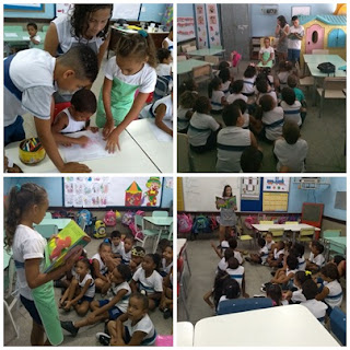 Na semana de acolhimento da Educação Infantil, alguns alunos do 4º ano, desenvolveram junto a essas turmas uma atividade bem legal de contação de histórias. Foi uma atividade bem animada, confira as fotos: